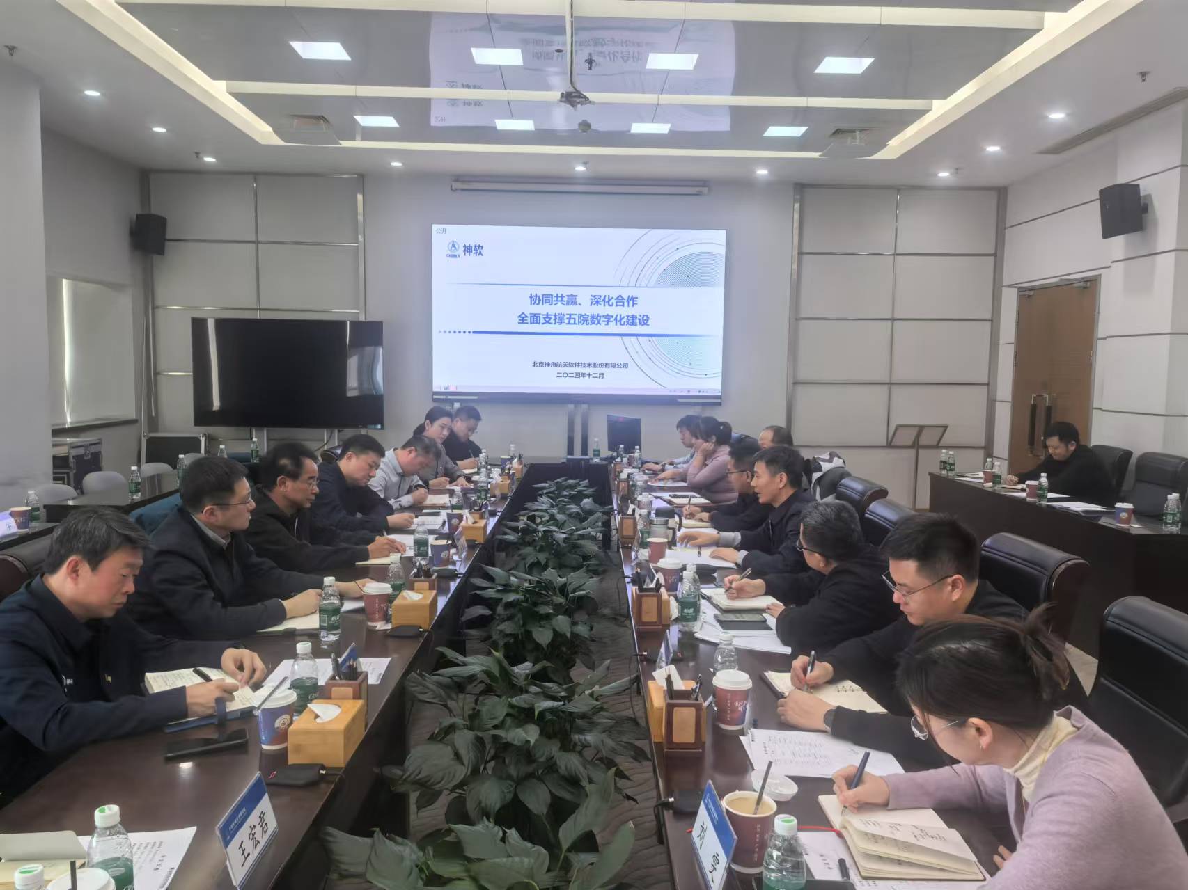 會上,雙方介紹了數字五院建設情況、神軟公司支撐航天五院數字化項目進展情況以及下一步合作方向。雙方在數字化轉型多領域的多個方面達成了共識。