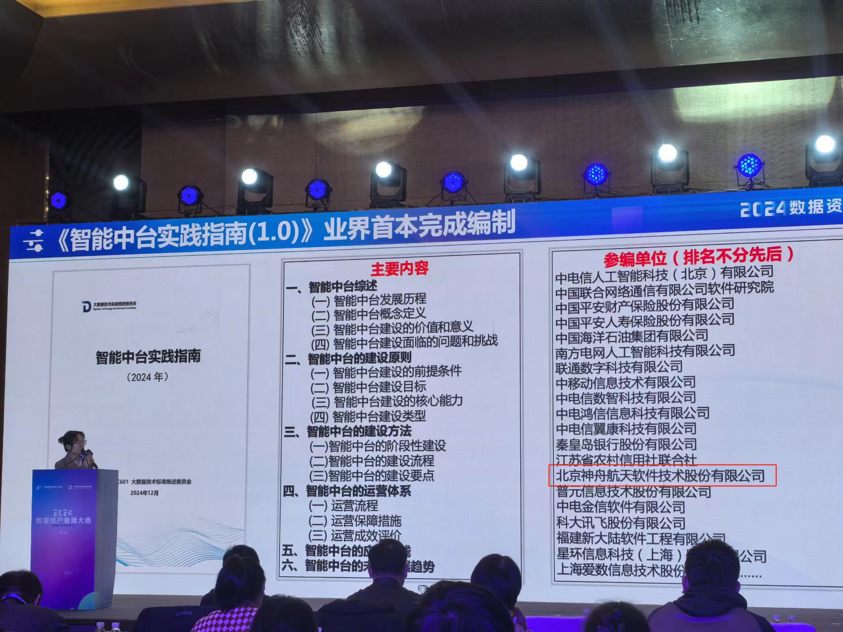 近期,中國通信標準化協會大數據技術標準推進委員會(以下簡稱:數標委)在北京舉辦了以“數據重塑價值 智能鏈接未來”為主題的“2024數據資產管理大會”。會上發布了神軟公司參與編制的業界首本《智能中臺實踐指南(1.0版)》,該報告由數標委啟動,以智能中臺系列標準為參考,總結了智能中臺建設實踐方法論,為企業智能中臺建設提供方法論指引。神軟公司基于自主研發的AI平臺產品“智匯AI開發平臺”的建設和應用實踐,進行提煉和總結,為《智能中臺實踐指南(1.0版)》編制及相關標準化工作貢獻了力量。