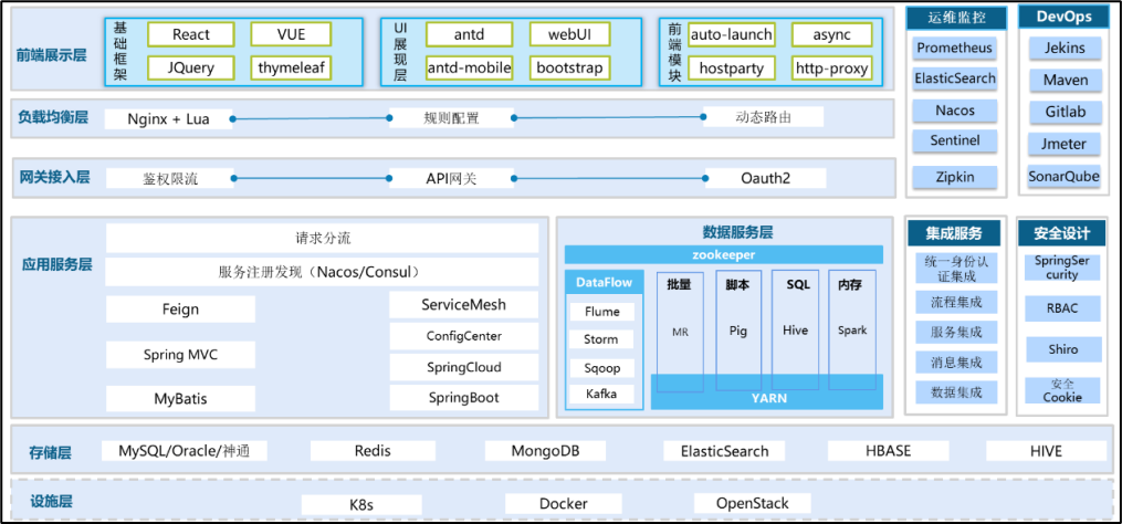 技術架構:基于ASP+微服務架構,融合低代碼快速開發、容器云平臺等技術手段,實現快速開發、迭代、部署等開發運維一體化。
